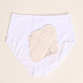 Pantyliner Plus is the newest addition to our lineup, and has been wildly popular! It’s small (so it’s discreet and not bulky at all), and a great place to start if you’re new to reusables. It’s longer than the Pantyliner, more flexible in the undies, and holds its shape well in the washer/dryer.